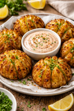These crowd-pleasing potatoes are perfect as an appetizer, game-day snack, or easy side dish for grilled meats and burgers. Paired with a creamy, tangy dipping sauce that blends mayo, sour cream, and bold spices, each bite delivers the perfect balance of crispy texture and rich flavor. They’re simple to prepare but look like something straight out of a restaurant kitchen.