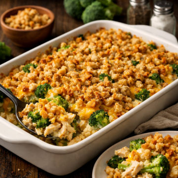 This Broccoli Chicken Casserole is classic comfort food made easy. Tender chicken and perfectly cooked broccoli are layered in a rich, creamy mushroom sauce, topped with melted Cheddar cheese and a crunchy stuffing mix that turns golden in the oven.