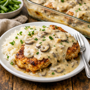 With pantry staples and a straightforward method, this recipe delivers juicy pork chops every time. Serve the savory mushroom sauce spooned generously over rice or mashed potatoes to soak up every last bit of flavor.