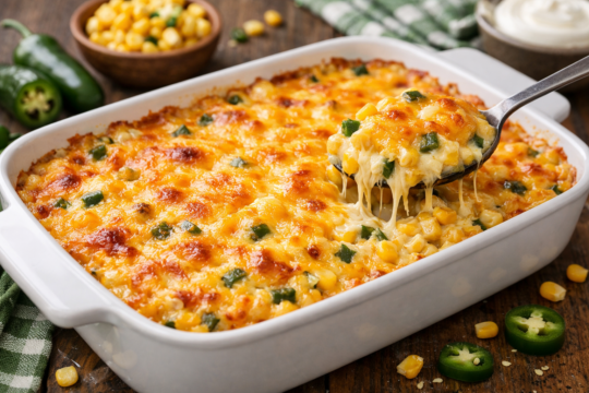 Perfect for potlucks, holiday dinners, or backyard barbecues, this easy casserole comes together quickly and bakes into a bubbling, golden dish everyone will want seconds of. The creamy base keeps the corn tender while the melted Cheddar on top forms an irresistible cheesy crust.