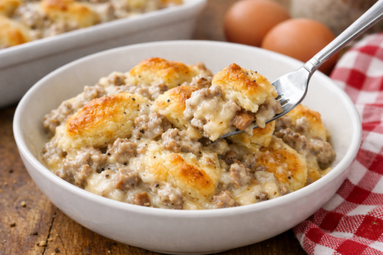 It’s simple to prepare and delivers all the classic flavors of biscuits and gravy in one easy casserole.