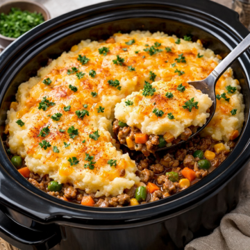 This Slow Cooker Shepherd’s Pie is the kind of hearty, stick-to-your-ribs comfort food that makes dinner feel effortless and satisfying. Savory ground beef is simmered low and slow with onions, garlic, tender mixed vegetables, and a rich, seasoned beef gravy until perfectly melded together. Every bite delivers deep, homestyle flavor without the need to stand over the stove.