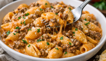 This creamy beef and shells is the ultimate cheesy dinner everyone will ask for.