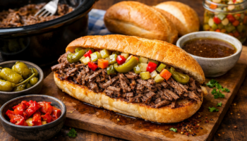 This slow cooker Italian beef is juicy, flavorful, and perfect for loaded sandwiches.